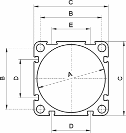 Profilo alluminio per camicia cilindri compatti ISO 21287, ø40 | 000.554.7 | ||