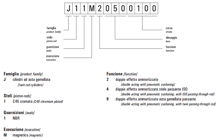 Cilindro ad asta gemellata J11M20320125 ø32; corsa 125 mm; magnetico; doppio effetto ammortizzato