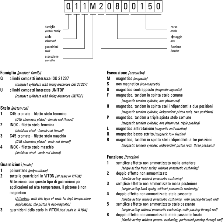 Cilindro compatto ISO 21287, stelo C45 cromato, filetto stelo maschio, tutte le guarnizioni in Viton