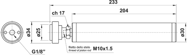 Cilindro pressore ø25 corsa 110 con tampone di spinta
