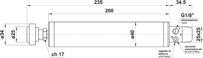 Cilindro pressore ø35 corsa 110 con tampone di spinta, con valvola di blocco 1/8"