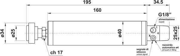 Cilindro pressore ø35 corsa 8 con tampone di spinta, con valvola di blocco 1/8"
