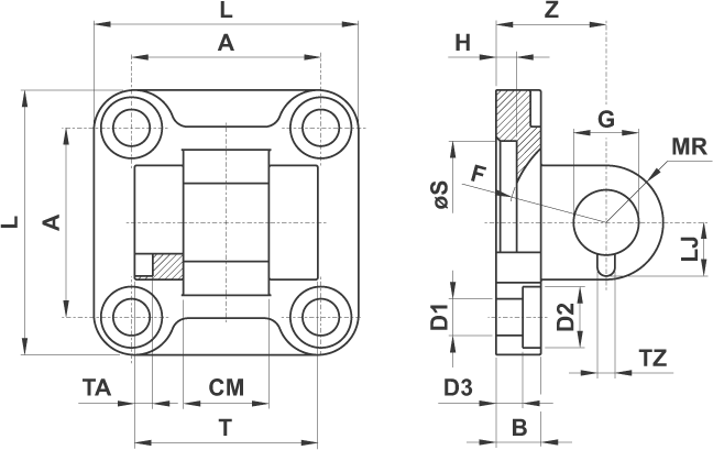 Cerniera femmina stretta per articolazione con testina snodata DIN 648 K ø50