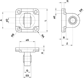 Cerniera maschio stretta ø125 in acciaio con testina snodata DIN 648 K