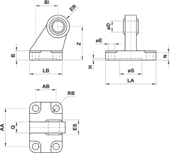 Controcerniera rettangolare ø63 in acciaio con testina snodata DIN 648 K