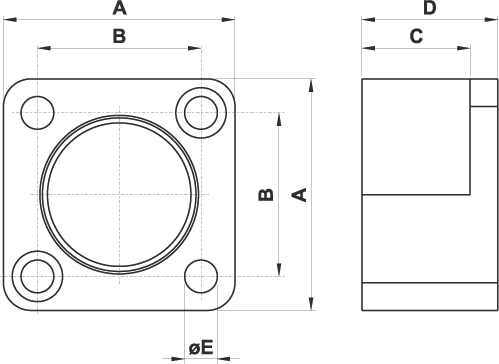 Flangia intermedia per cilindri ISO 15552 contrapposti ø32