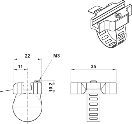 Fascetta per montaggio sensori R e E su microcilindri ø8-25 | 26.559.0 | ||