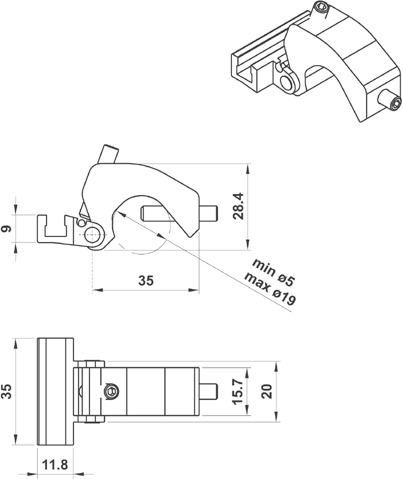 Staffa per montaggio sensori R e E su tiranti ø5-19mm per cilindri ISO VDMA | 26.561.0 | ||