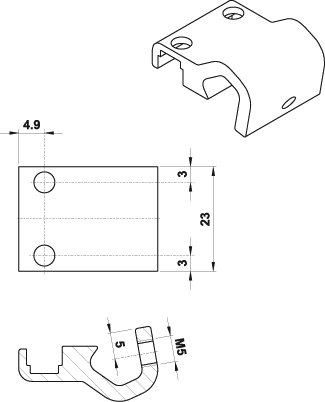 Staffa per montaggio sensori R e E su senza stelo OPL / corsa breve serie D | 26.558.0 | ||