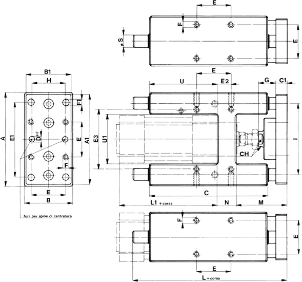 Unità di guida tipo "H" con manicotti a ricircolo di sfere; alesaggio ø32 corsa 200