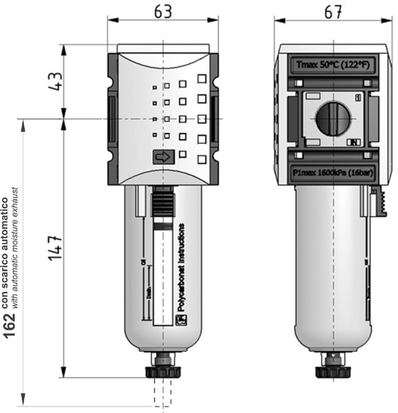 Filtro G1/2", elemento filtrante 5µ, scarico automatico della condensa