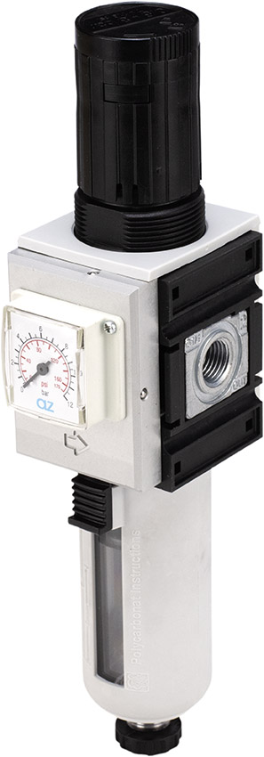 Mini filtroregolatore G1/4", elemento filtrante 5µ, con manometro integrato | 16.300.0 | FR 2MK-08-05-S | |