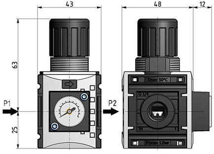 Mini regolatore G1/4", con manometro quadrato