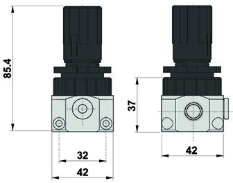 Miniregolatore di pressione G1/4" con fori passanti fissaggio a parete