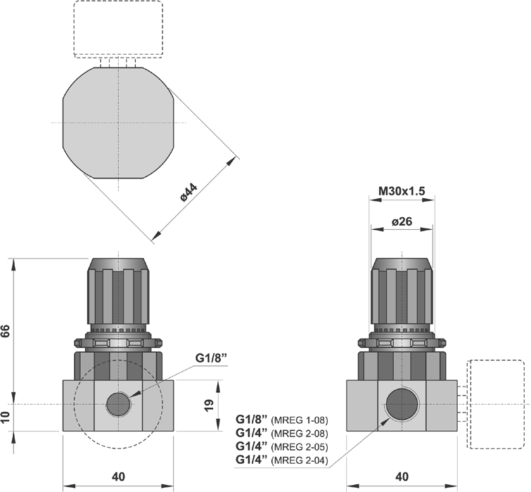 Miniregolatore di pressione G1/4", pressione massima 5 bar