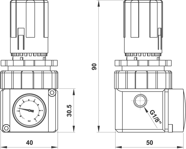 Miniregolatore di pressione G1/8" con manometro incorporato
