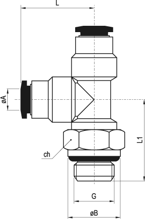 RP225 12 3/8 - Raccordo a T orientabile maschio laterale cilindrico