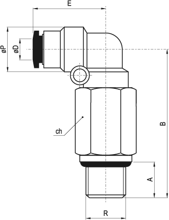 AZLL-G 6 M5 - Raccordo a L orientabile lungo, maschio cilindrico