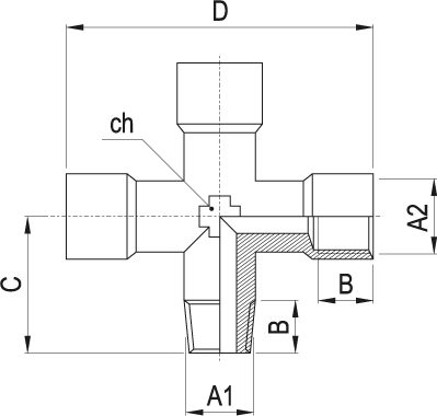 RC625 3/8 - Raccordo a croce 1 maschio conico + 3 femmine