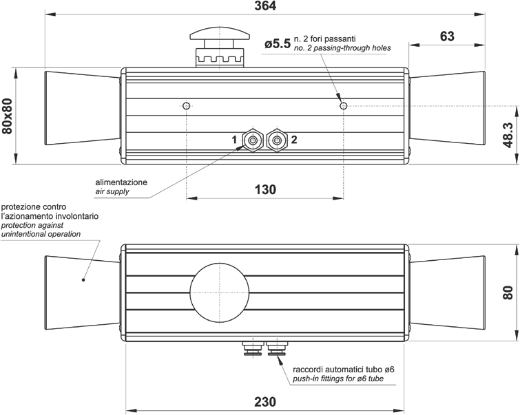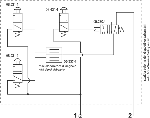 Dispositivo di comando a due mani con mini elaboratore, con valvola 3/2 di intercettazione