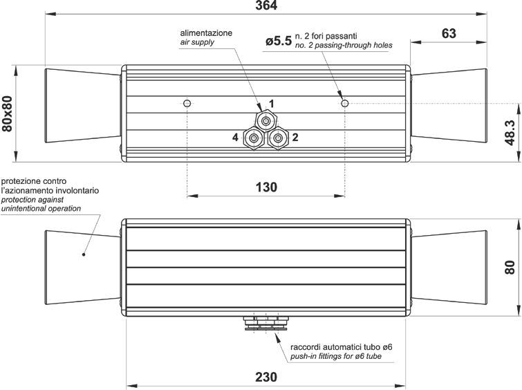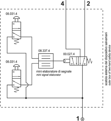 Dispositivo di comando a due mani con mini elaboratore, con valvola 5/2 di portata