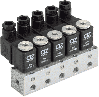 Base con 5 elettropiloti senza azionatore manuale, senza bobine | 00.075.3 | ||