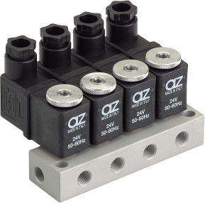 Base con 4 elettropiloti con azionatore manuale, senza bobine | 00.054.3 | ||