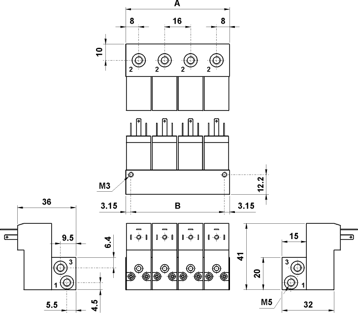 Base 6 posizioni per elettropiloti 15 mm elettropiloti non compresi