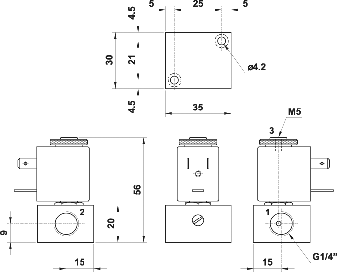 Elettropilota singolo NC con azionatore manuale bistabile - base con attacchi G1/4", senza bobina