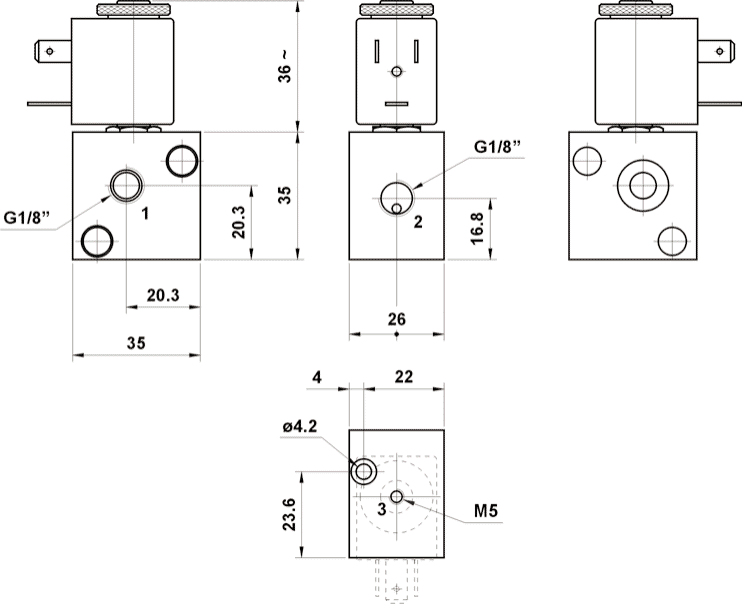 Per utilizzare questo prodotto come valvola 2/2, per ogni elettropilota è necessario acquistare la ghiera in alluminio (codice 00.125.2) e il tappo M5 (codice 36.643.0).