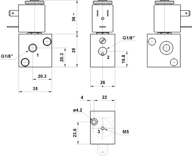 Per utilizzare questo prodotto come valvola 2/2, per ogni elettropilota è necessario acquistare la ghiera in alluminio (codice 00.125.2) e il tappo M5 (codice 36.643.0).