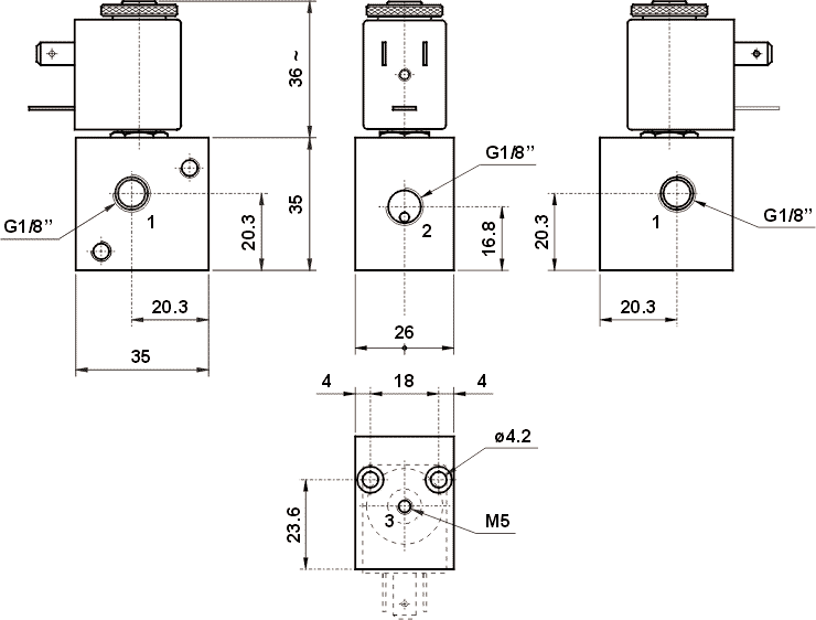 Per utilizzare questo prodotto come valvola 2/2, per ogni elettropilota è necessario acquistare la ghiera in alluminio (codice 00.125.2) e il tappo M5 (codice 36.643.0).