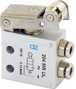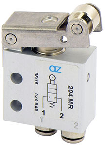 2/2 NC, raccordi automatici per tubo ø4 laterali, leva rullo | 08.196.4 | 204 MR UL | |