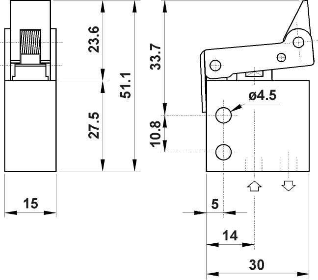 3/2 NA, attacchi filettati M5, leva unidirezionale