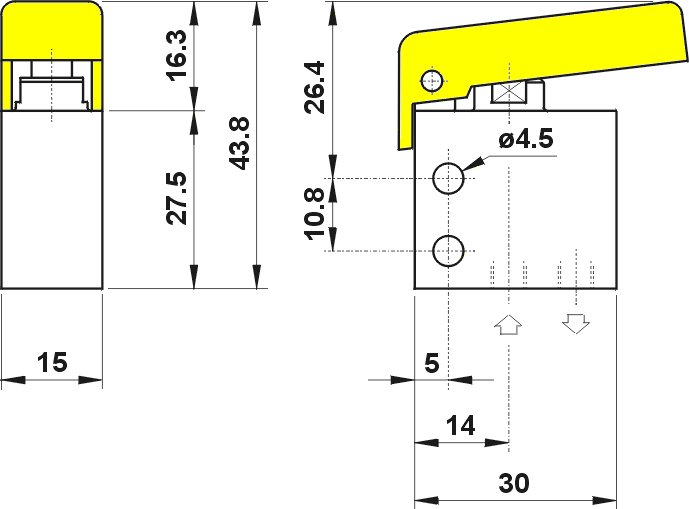 3/2 NA, attacchi filettati M5, tasto GIALLO