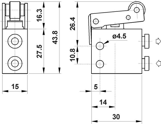 3/2 NA, raccordi automatici per tubo ø4 laterali, leva rullo