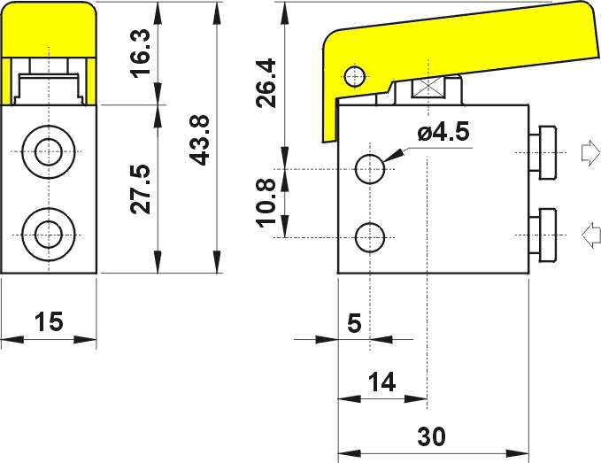 3/2 NA, raccordi automatici per tubo ø4 laterali, tasto GIALLO