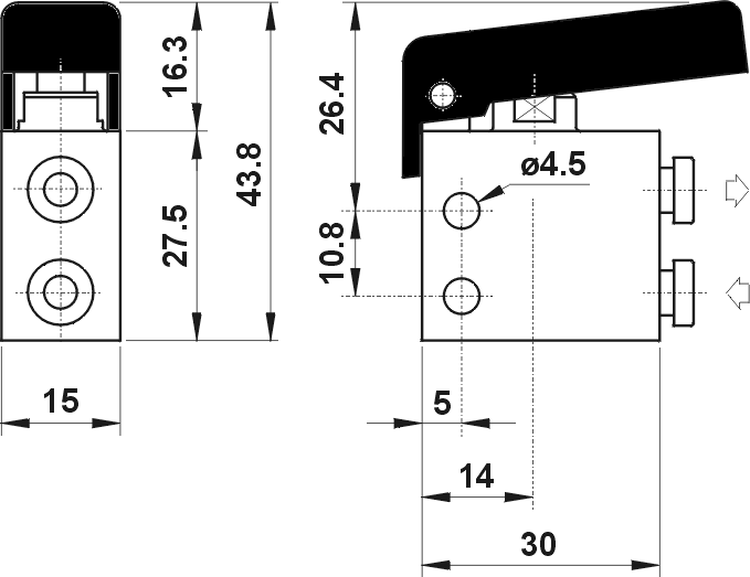 3/2 NA, raccordi automatici per tubo ø4 laterali, tasto NERO
