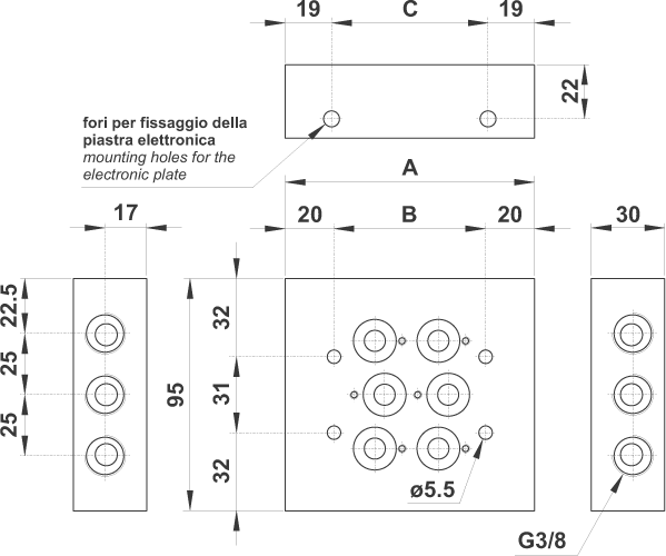 Base posti fissi per multiconnessione plug-in 1/4", 6 posizioni