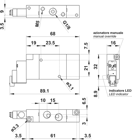 5/2 1/8" comando elettrico 24V DC, ritorno a molla