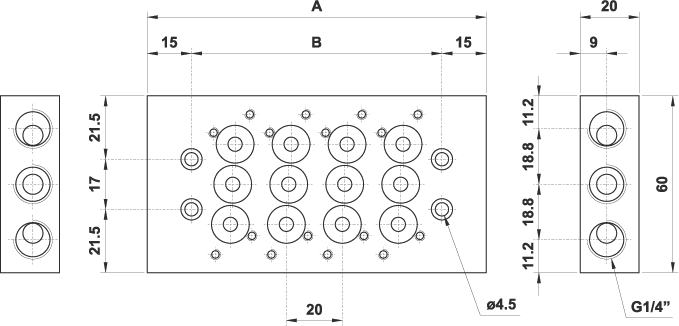 Kit base a 2 posti fissi per valvole 18 mm in linea 5 vie