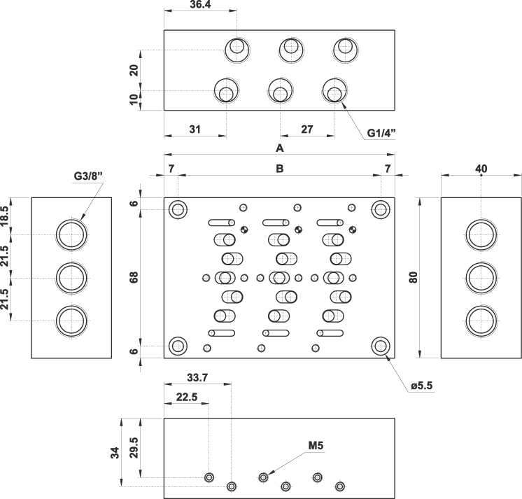 Base a 3 posti fissi per valvole VDMA 25 mm