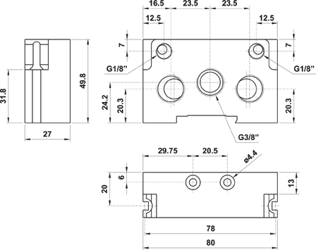 Kit terminale sinistro VDMA 25 mm