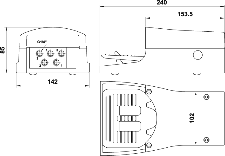 Pedale 5/2 1/4" bistabile senza protezione, con fermo di sicurezza