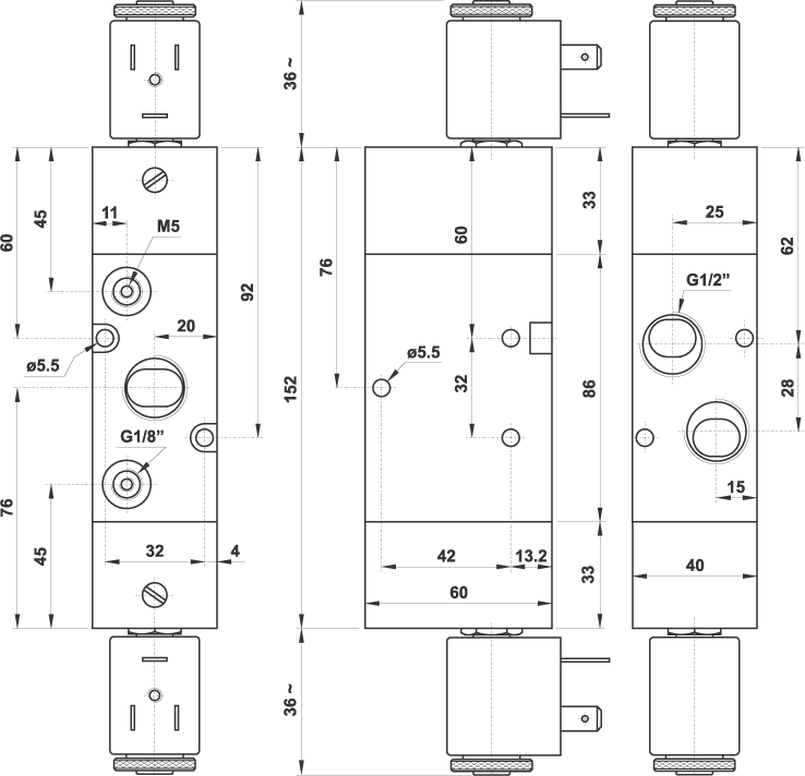 3/2 1/2" doppio comando elettrico, con differenziale, senza bobine