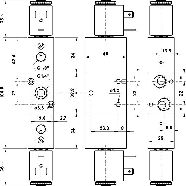 3/2 1/4" doppio comando elettrico alimentazione separata, senza bobine