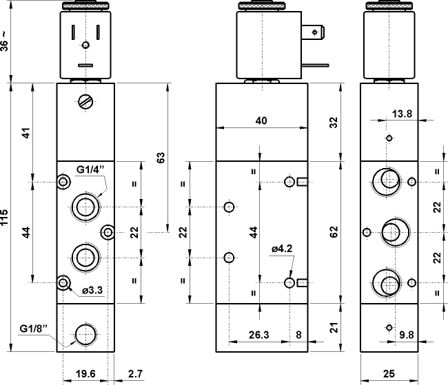 5/2 1/4" comando elettrico, riposizionamento a comando pneumatico, senza bobina