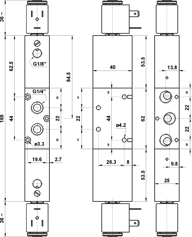 5/3 1/4" centri aperti, doppio comando elettrico alimentazione separata, senza bobine