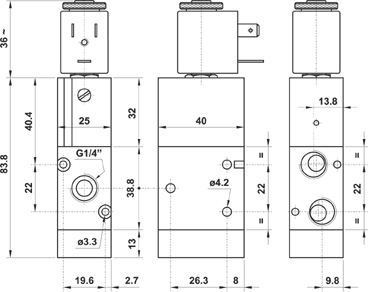 3/2 1/4" NC comando elettrico - ritorno a molla, con sede sensore