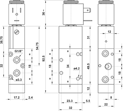 5/2 1/8" comando elettrico - ritorno a molla, con sede sensore